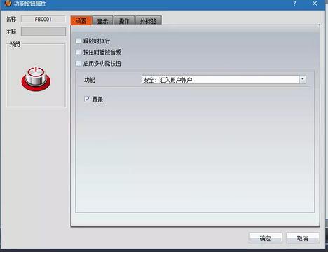 操作方法:(1)U盤在線更新安全等級(jí)信息、密碼,也是十分方便,在您勾選啟用安全后(步驟如上文所述),在界面中放置一顆功能按鈕,選擇“安全:匯入用戶賬戶”,如下圖: