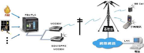 透過MODEM作LINK FBs-PLC能夠由階梯圖程式自行控制MODEM撥號,與遠方之MODEM與PLC作Link,無需操作人員或電腦介入,而達 成諸如總公司對各分工廠每日總生產(chǎn)量之自動匯整或自動資料搜集、警、報異常回報等監(jiān)控工作。