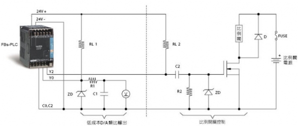 由于硬體電路之高速與精準穩定特性,FBS-PLC可輕易作出細致的溫度控制、比率閥控制或外加簡易之積分電路而做成便宜實用之D/A類比輸出。簡直沒有更完美的了。