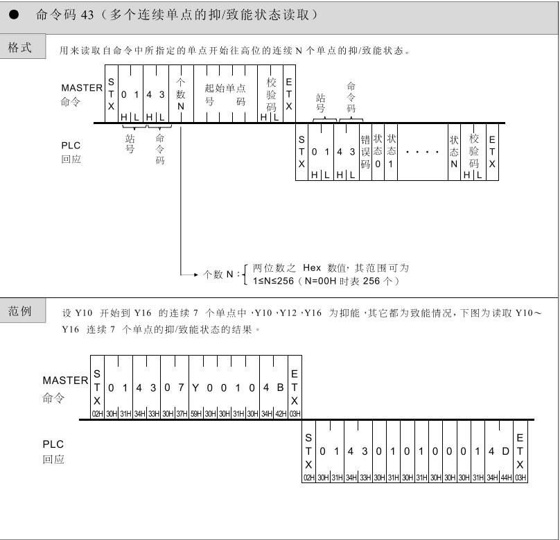 FATEK 臺灣永宏PLC編程命令碼43.多個連續(xù)單點的狀態(tài)讀取
