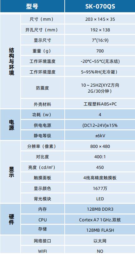 SK-070QS 顯控人機界面 顯控觸摸屏