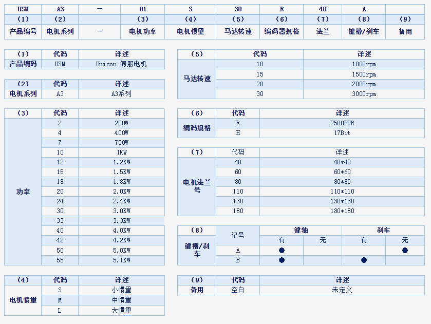 注:□:為R代表編碼器2500PPR;為H代表編碼器17Bit
